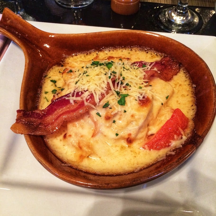 This would, of course, be a spin on the Kentucky Hot Brown, an iconic dish developed a century ago at Louisville’s Brown Hotel. It’s an open-faced sandwich of roast turkey, crispy bacon and sliced tomato drenched in cheesy Mornay sauce. It’s a gut-bomb, but it’s also delicious.