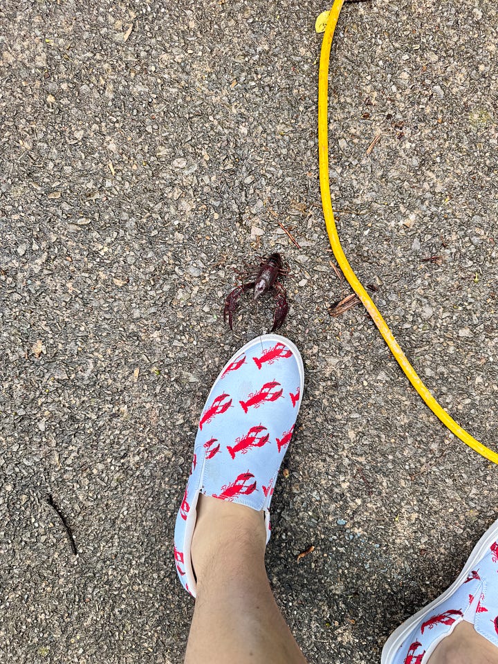 More important, though, we went to a neighbor’s Derby part-slash-crawfish boil, and I got to show off the shoes I bought from Friend of the Program Zach Rau a couple years ago.